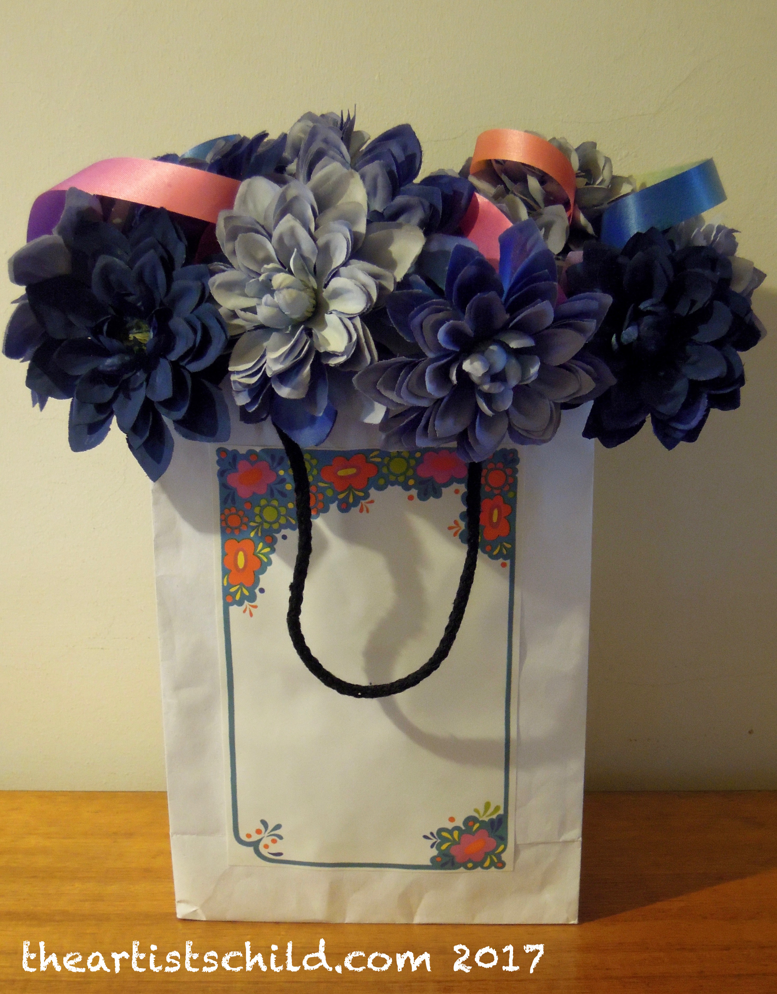 DSCN1789 Published 03/07/2017 at 2934 × 3753 in Strange Social Entertainments of the Past ← Previous Next → 60s flower power party decoration, recycled fabric flowers from op shop and ribbon, white paper shopping bag with attached vintage note paper